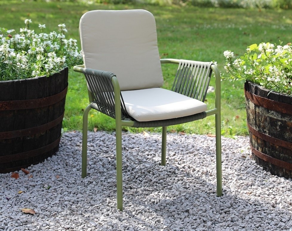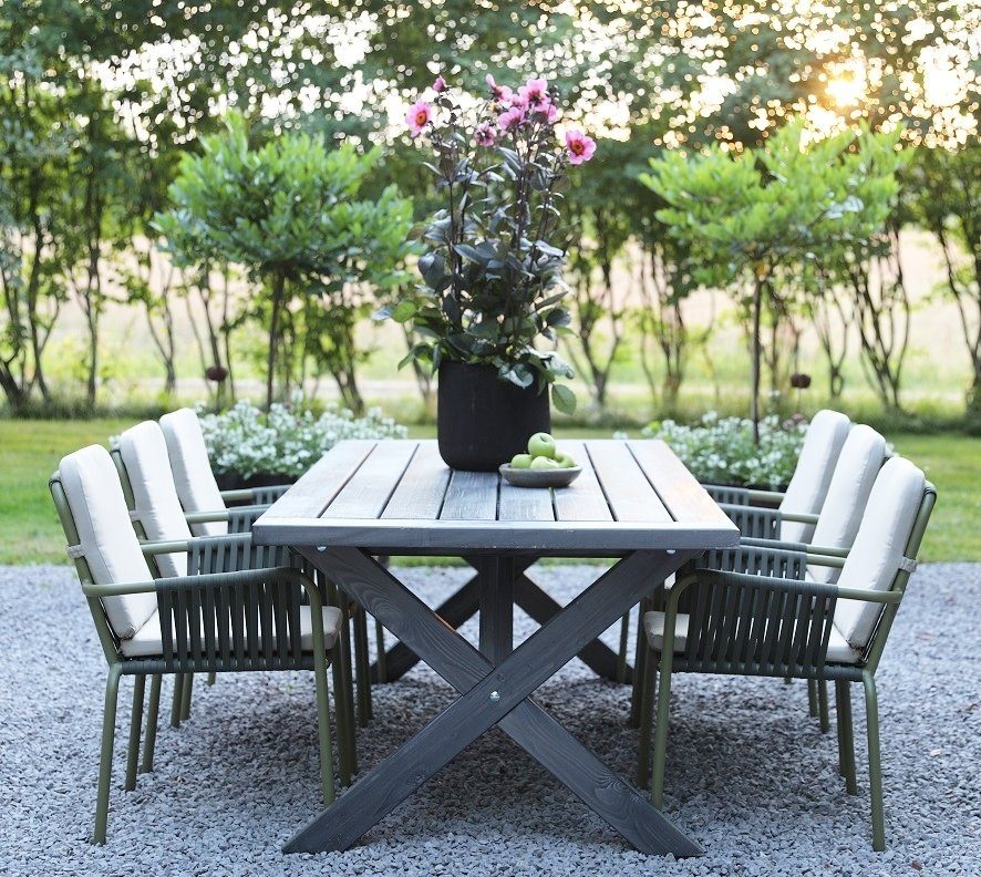 Inklusive 6 st sköna Lincoln stapelbara karmstolar i grönlackad aluminium stomme med en beioge dyna för rygg och sits. Matgruppen passar perfekt på altanen, uteplatsen och i uterummet.