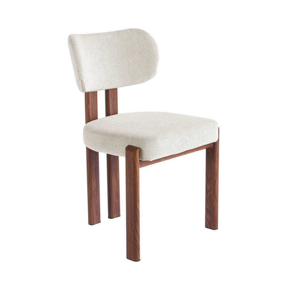 Den mjukt stoppade sitsen och ryggen är klädda i ett lent, beigefärgat tyg som skapar en varm kontrast mot den mörka stommen. Callum passar lika bra till runda som till rektangulära matbord och blir ett stilrent blickfång i det moderna hemmet.