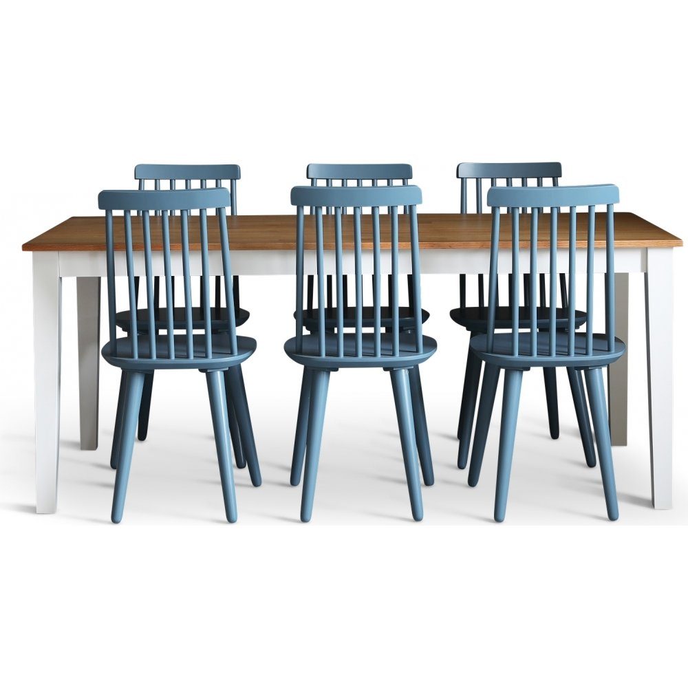 Dalsland matgrupp: Matbord i Ek / vit med 6 st duvblå Pinnstolar
