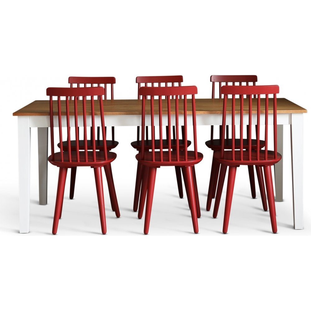 Dalsland matgrupp: Matbord i Ek / Vit med 6 st röda Pinnstolar + Stolsdyna