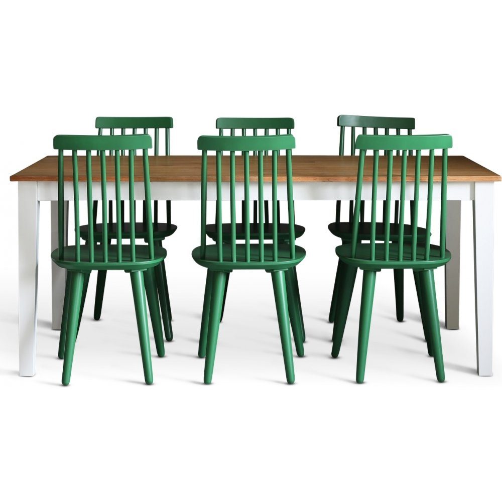 Dalsland matgrupp: Matbord i Ek / vitt med 6 st gröna Pinnstolar