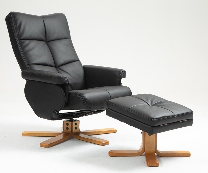- Duva reclinerfåtölj med fotpall i svart PU med bruna ben