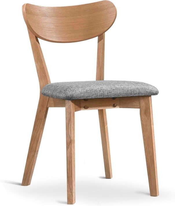 Trendig matstol i massivträ och grå tygsits.