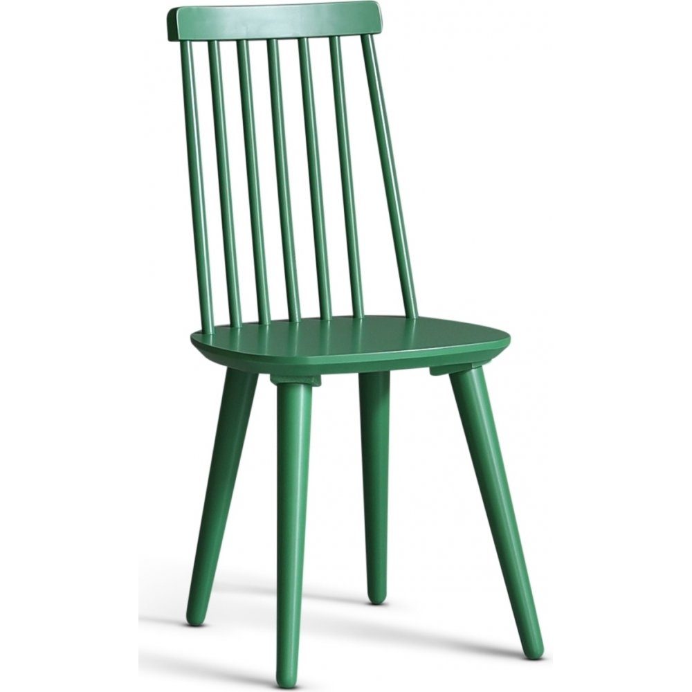 Trästolen är tillverkad i massiv heveaträ som är slitstarkt och kvalitativt, med en fabriksmålad yta i snygg grön finish.