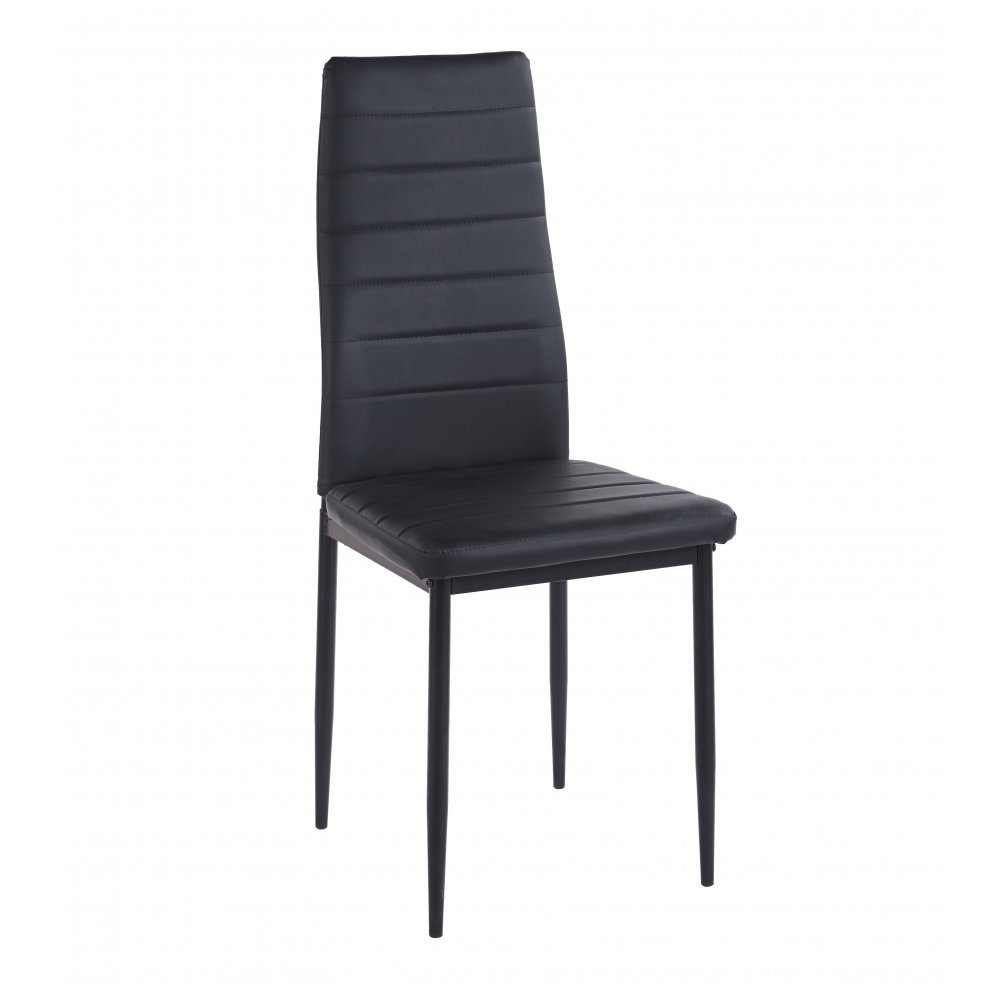 Iris matstol i svart PU sits och rygg. Stolen har svartlackerade metallben.