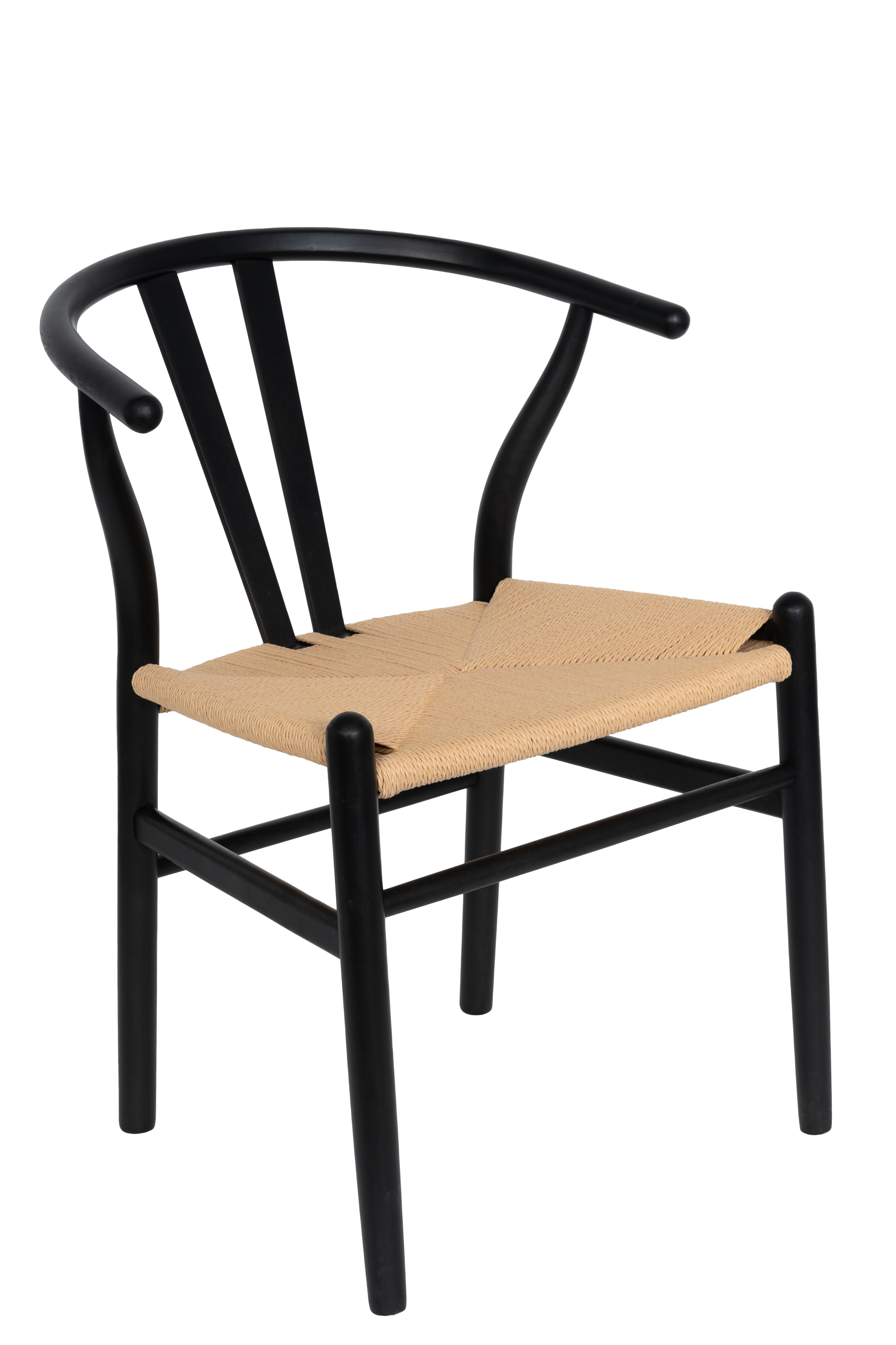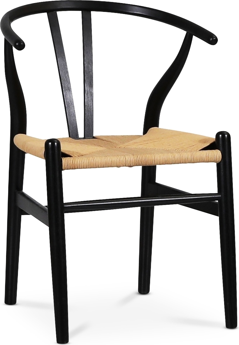 De fyra Brandon karmstolarna är tillverkade i FSC-certifierat svartmålat bokträ med en vackert flätad sits av slitstarkt papperssnöre. Kombinationen av robust trä, naturlig sits och stilrena linjer gör att stolarna både känns gedigna och bekväma. Den svarta ytan kontrasterar fint mot bordets varma ton i ek och ger en elegant helhet.