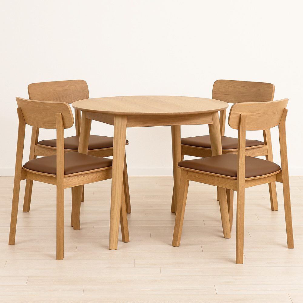 Matgrupp Genova 90–130x90 cm i oljad ek med 4 st Kleppen stolar i ek och brun PU