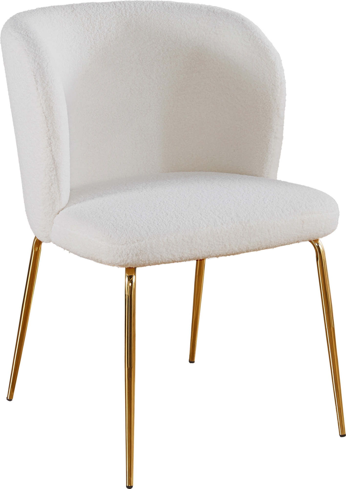 Stolarna i bouclé kompletterar bordet med sin mjuka, texturerade klädsel i creamfärgat tyg och eleganta ben i mässingsfinish. Kombinationen av boucléns taktila känsla och mässingens glans skapar en lyxig men inbjudande atmosfär. Stolarna erbjuder dessutom hög sittkomfort tack vare sin generösa stoppning och omslutande form.