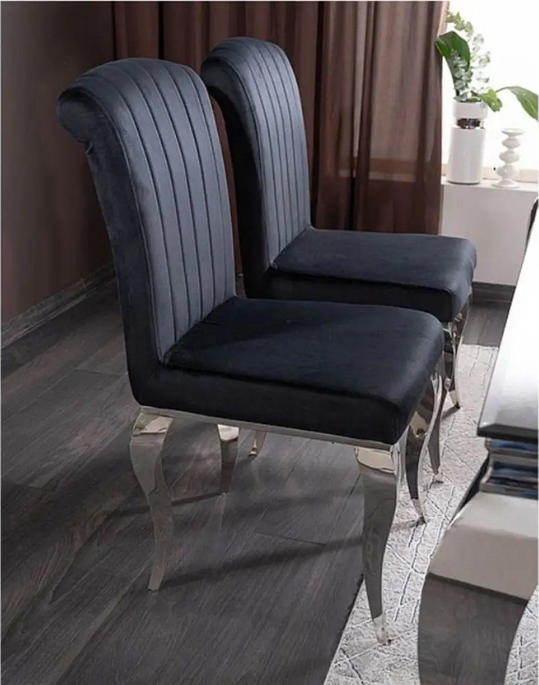 Matstol svart sammet med kromade ben