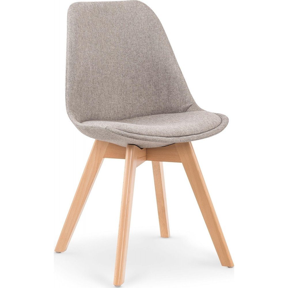 En fin matstol med en modern design. Matstolen är tillverkad av solid trä med den naturliga trä looken på benen och sitsen är klädd med ett mycket behagligt tyg för maximal komfort.