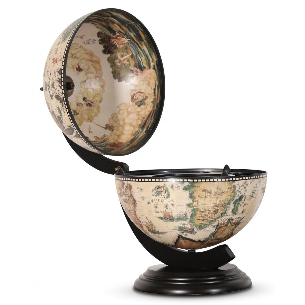 Klassisk barglob med förvaring för flaskor och dylikt. Denna modell är i utförande med vit snyggt svarvad bottenplatta.