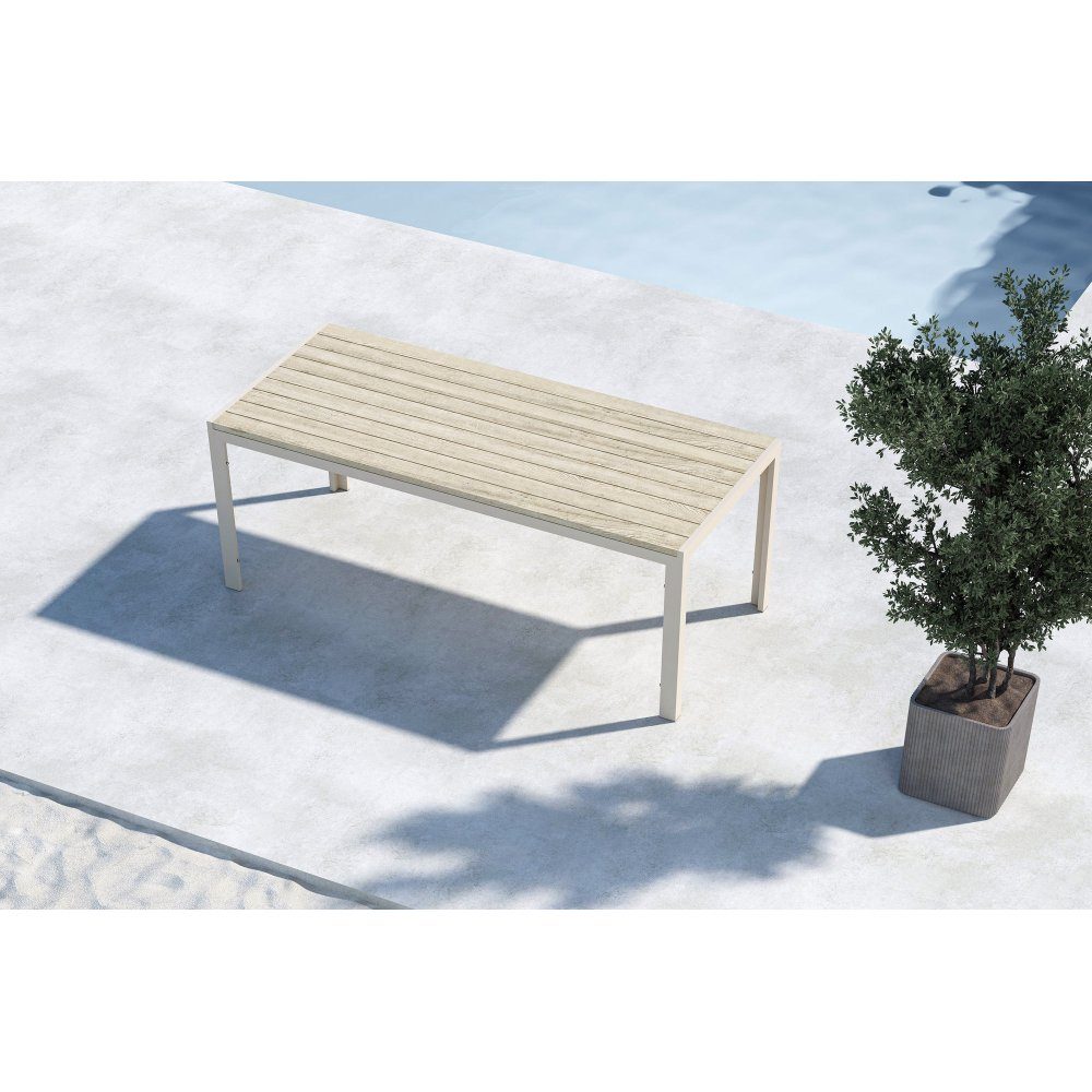 Upptäck Mirko – ett bord som passar perfekt i alla utomhusmiljöer. Med sin eleganta beige färg och moderna rektangulära form ger Mirko en fräsch och inbjudande känsla till din uteplats. Bordet är tillverkat med en hållbar och rostbeständig aluminiumram som gör det både lätt och robust. Den vackra bordsskivan i plywood ger en naturlig värme och elegans. Med sin generösa storlek är det perfekt för både måltider och sociala tillställningar, där det erbjuder gott om plats för hela sällskapet. Välj Mirko för en funktionell och stilfull utomhuslösning som håller länge.