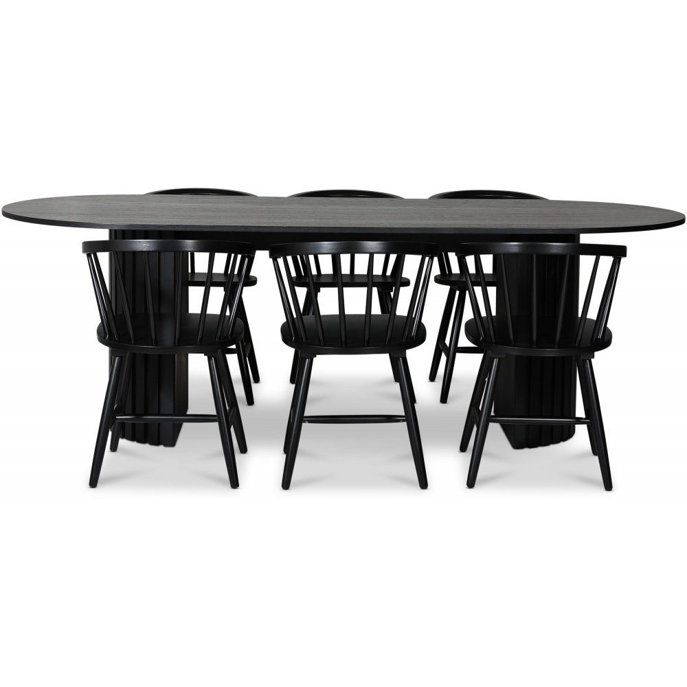 PiPi matgrupp 230 cm inkl. 6 st Fårö svarta karmstolar - Svartbetsat trä