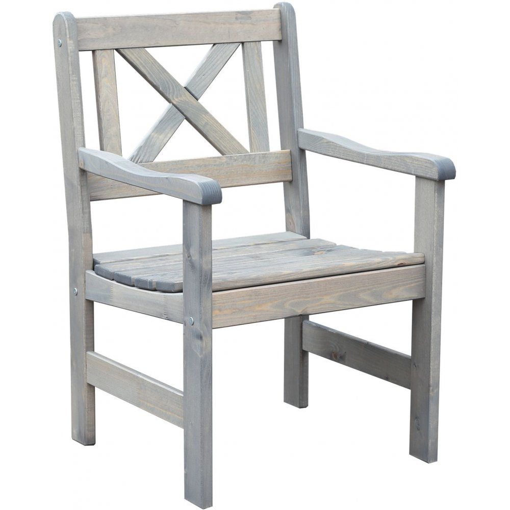 Klassisk fåtölj för uteplatsen från Skånska Möbelhuset. Robust stomme i gråbetsad furu. Serie Bollnäs