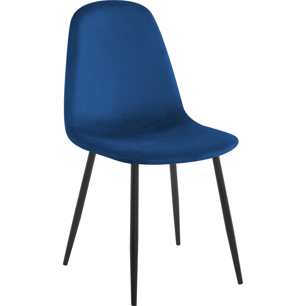 Matgrupp från Skånska Möbelhuset, Rosvik matbord 120 cm i diameter. Medföljer 4 st matchande Carisma sammetstolar i blått sammet med svarta ben.