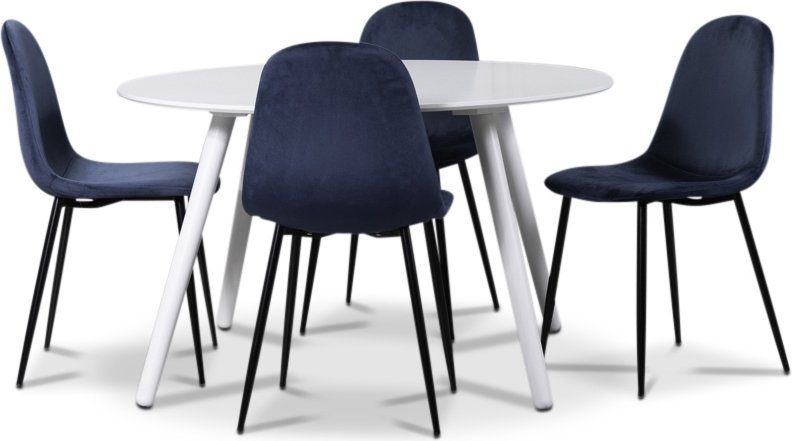 Rosvik matgrupp, matbord med 4 st Carisma sammetsstolar - Vit/Blå