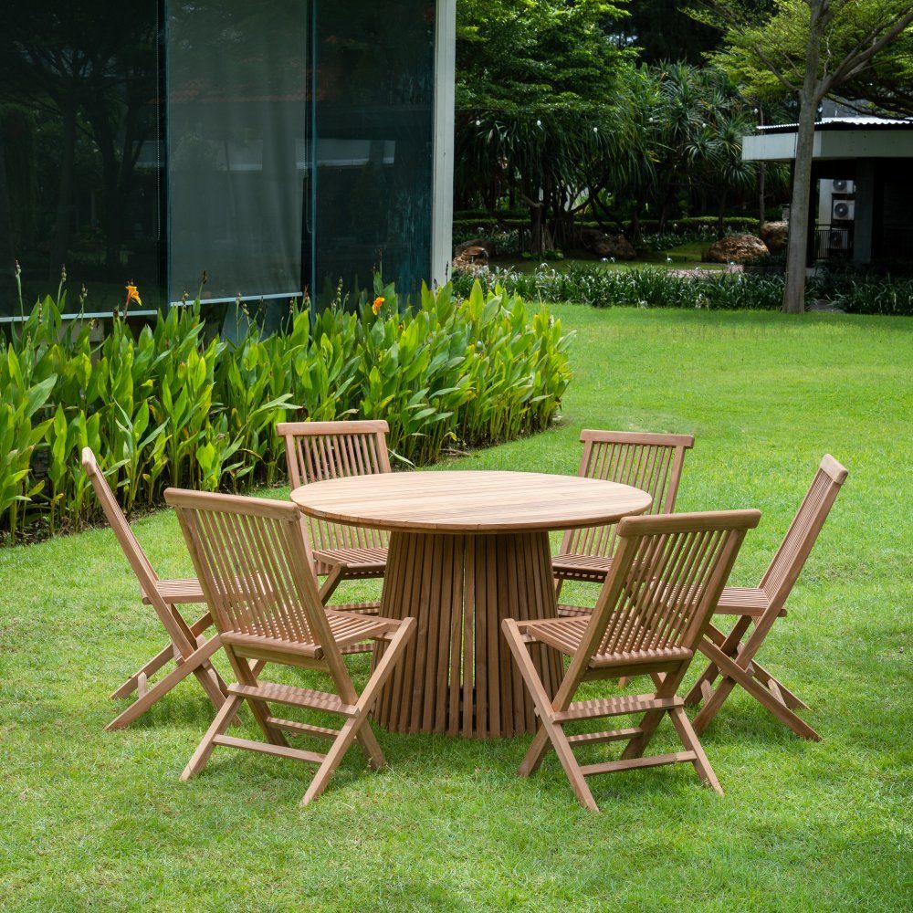 Saltö utegrupp i teak: runt teakbord med 6 st teakstolar