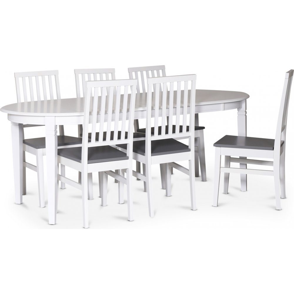Sandhamn matgrupp Klassiskt utförande. Stilrent Ovalt matbord med vitlackade ben och bordsskiva.
