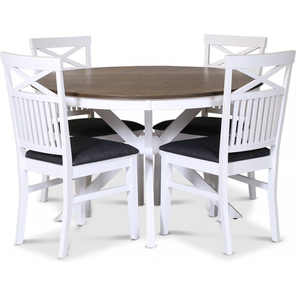 Skagen matgrupp; runt matbord Ø120 cm - Vit / brunoljad ek med 4 st Skagen stolar med grå sits