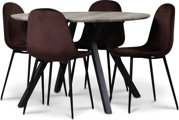 Smokey matgrupp, runt matbord med 4 st Carisma sammetsstolar - Bordeaux