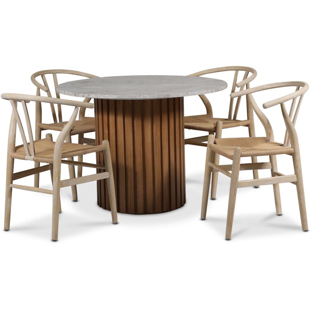 Sumo matgrupp Ø105 cm inkl. 4 st Brandon matstolar whitewash - Oljad ek / Silver marmor