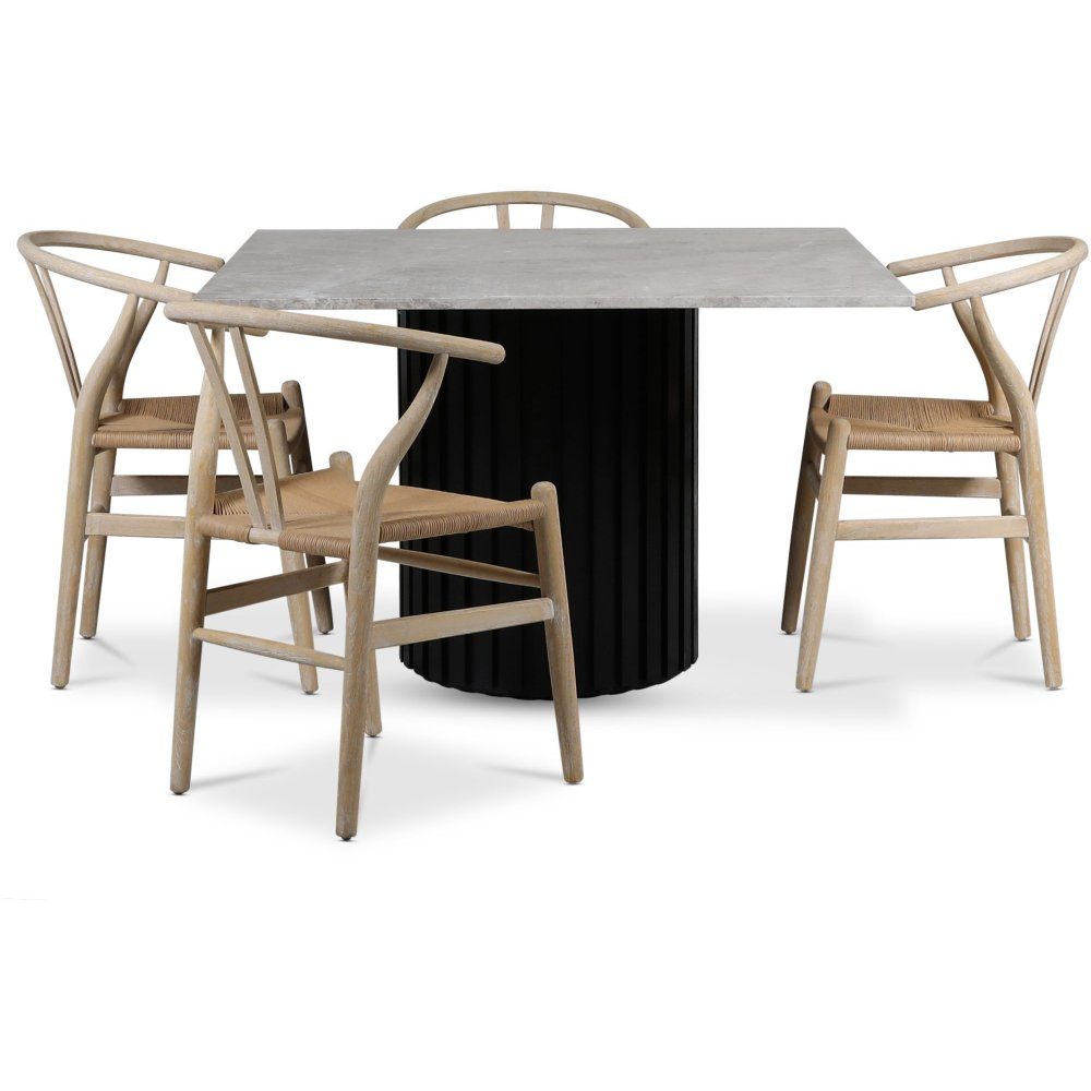 Sumo matgrupp 120x120 cm inkl. 4 st Brandon matstolar whitewash - Svartbets / Silver marmor