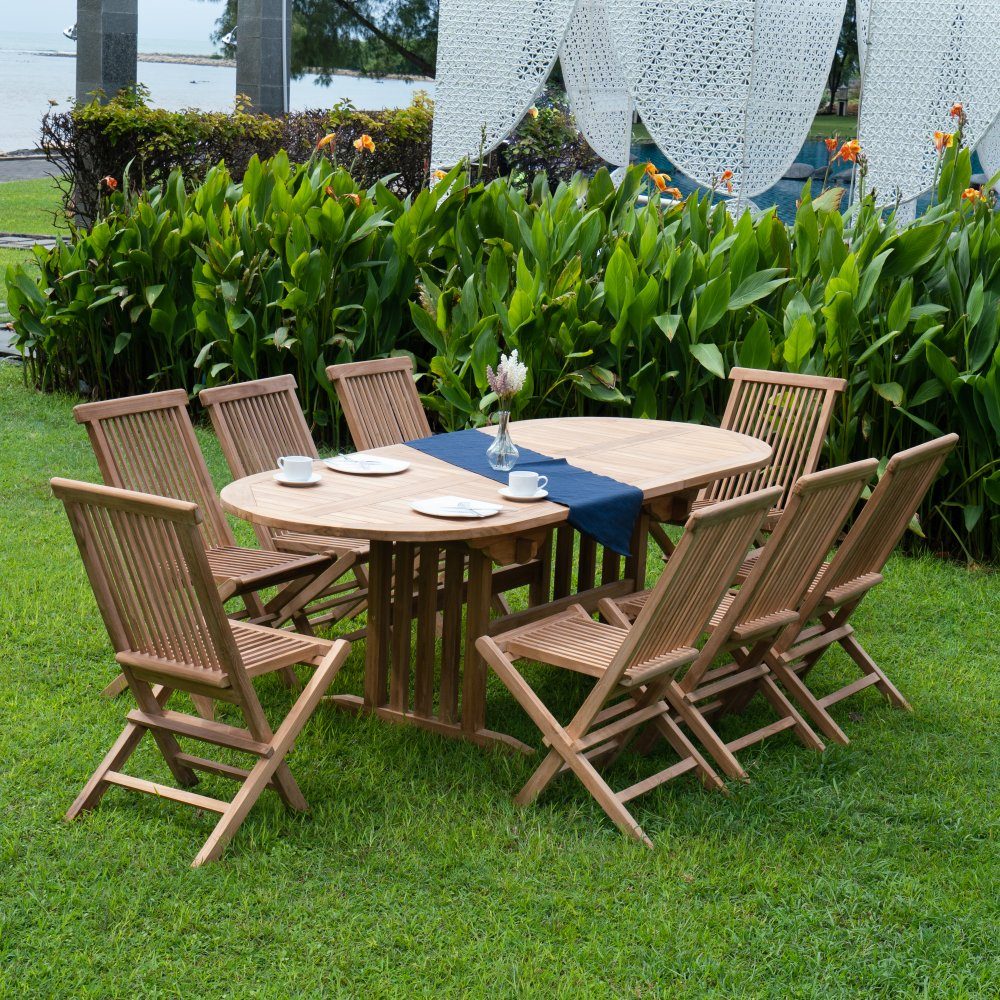 Teakgrupp; matbord med åtta stolar - Saltö