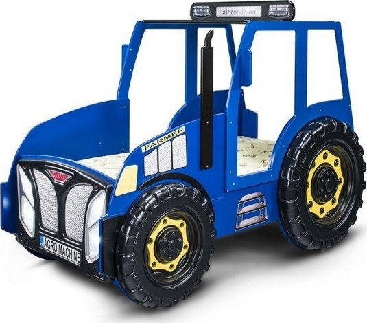 Fräck barnsäng i form av en traktor, perfekt för det maskinintresserade barnet. Slå dig ner i hytten och bege dig ut på fälten i fantasin och gör alla sysslor innan tröttheten börjar komma och barnet kan lägga sig och sova skönt. Framlampor som går att tända så att man kan hålla igång långt in på kvällen. Obs, registreringsplåten kommer med ett annat neutralt registreringsnummer.