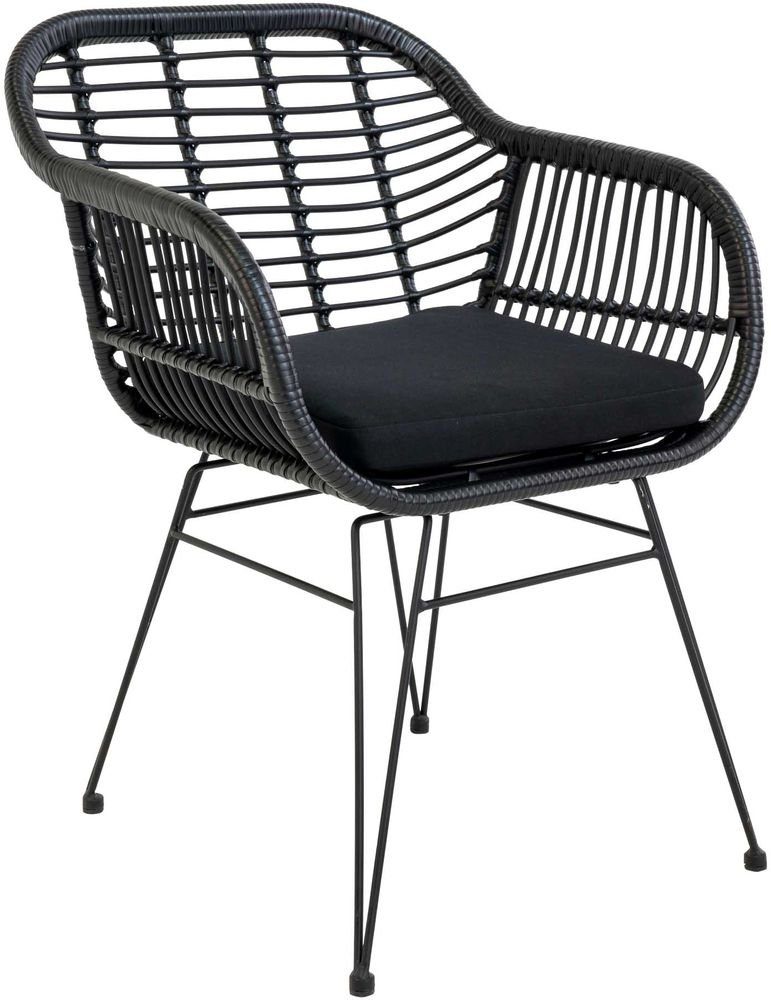 Stol i svart polyrotting med dyna.