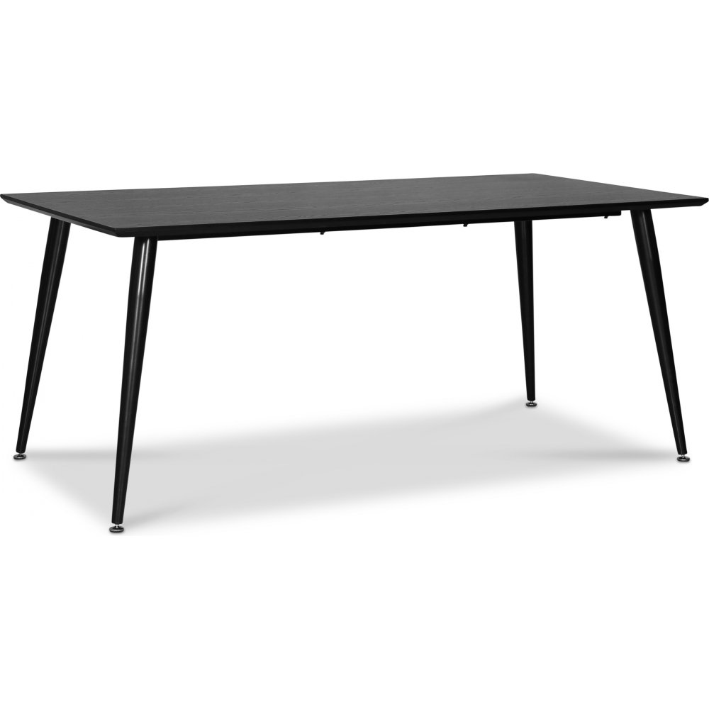 Slope är en klassisk matgrupp, bord med toppskiva av MDF/fanér, svartbetsad ekfanèr. Stabila svarta metallben med rund justerbar golvplatta nedtill på varje bordsben för att stå stadigt.