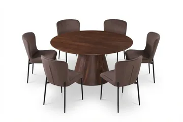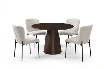 Siena Matgrupp runt 110 cm Rökt Ek med 4 Elsie Matstolar, Rökt ek/Beige
